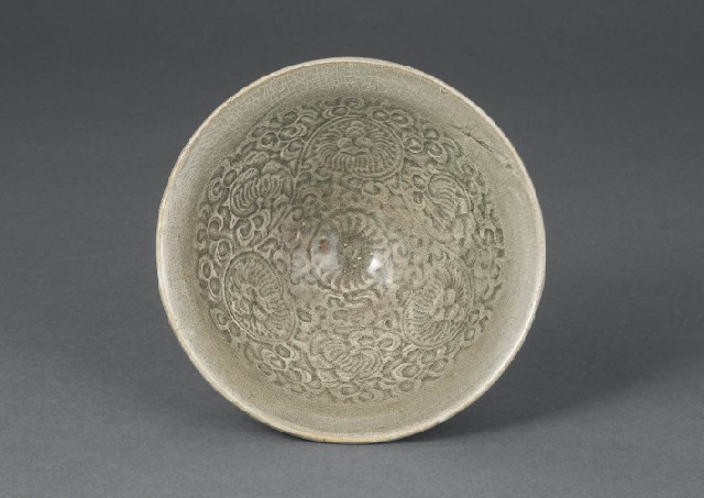 【Lot0137】 耀州窯青磁陰刻花唐草文碗