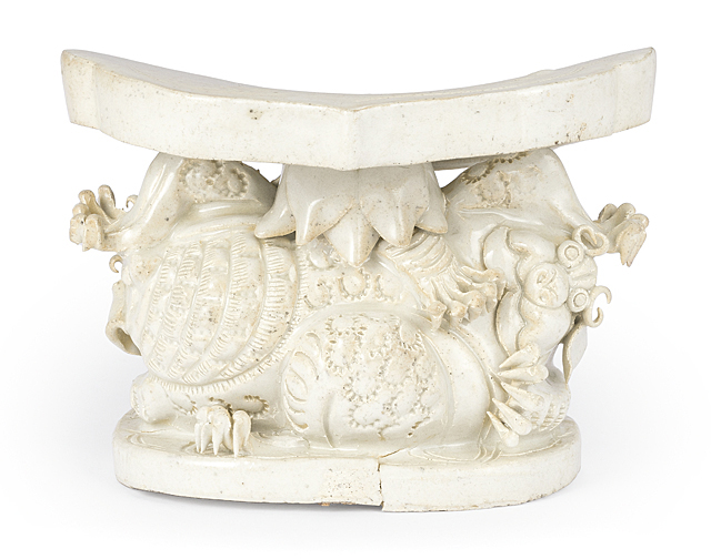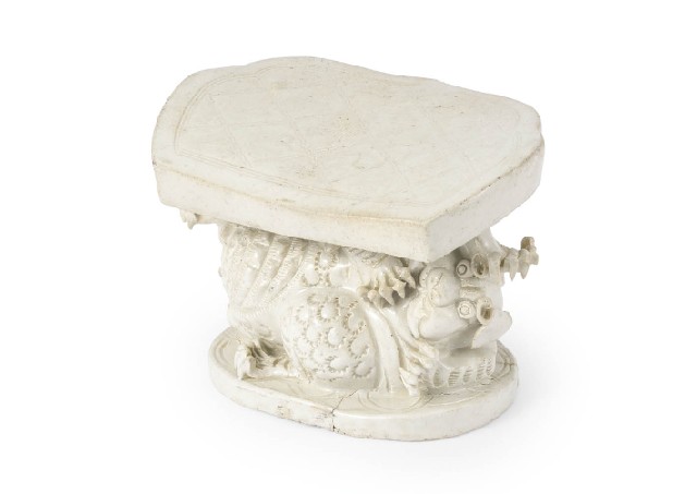 【Lot0139】 青白磁獅子如意頭形陶枕
