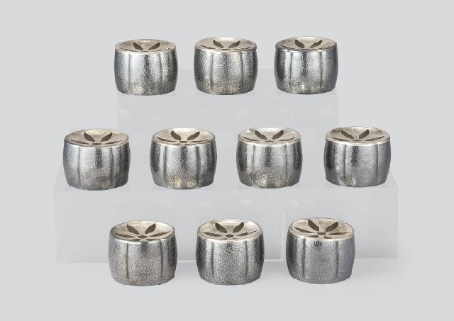 H6.2×W8.9(各)cm 総重量約1213g 各底部に刻印「純銀」 各変色 箱付