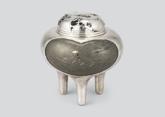 勝信銘純銀製三足香炉