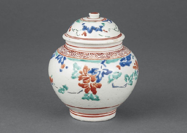 【Lot0200】 初期柿右衛門色絵牡丹文蓋付壷