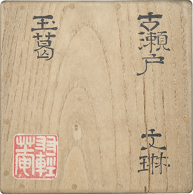 H7.6×W5.8cm 底部に掻き銘 小堀蓬露箱 小堀宗慶箱 仕覆2点、挽家付 「男爵武井家御藏品入札」(東京美術倶楽部 1920年)目録No.84に掲載 同目録付