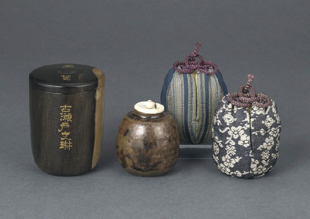 古瀬戸文琳茶入 歌銘 玉葛