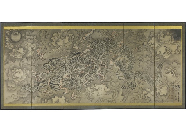 H175.3×W63.4cm×6曲 直し 文献:「岸駒:没後一五〇年記念特別展」(富山美術館刊 1987年) P.108に掲載