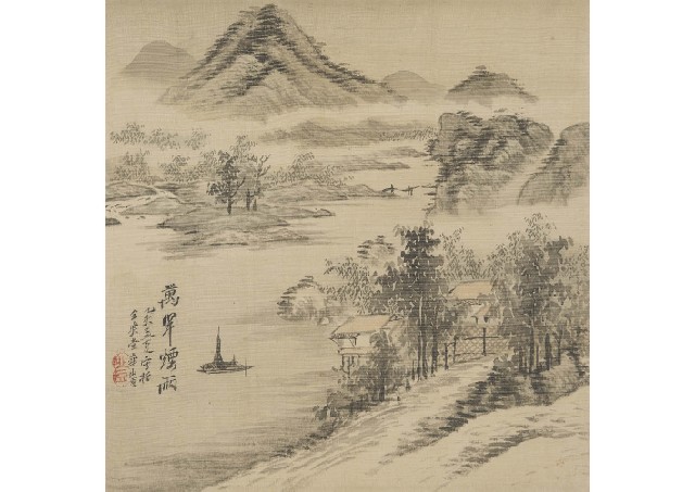 絹本・彩色 落款と印有 軸装 28×27.5(絹本)cm 全体/133.6×46cm 渡辺崋石箱 文献:鈴木榮之亮編 「崋山先生錦心圖譜 下巻」(東京美術青年會刊 1941年) No.232に掲載 同文献付