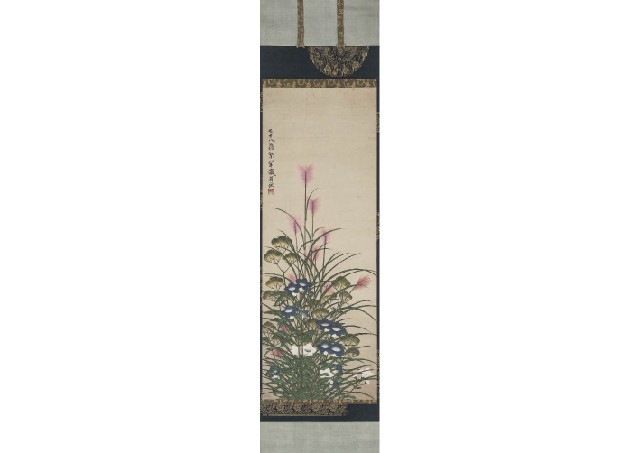 紙本・彩色 落款と印有 軸装 128.8×47.3(紙)cm 全体/213.2×55.5cm イタミ 安田靫彦箱 相見香雨鑑定書
