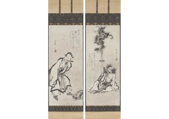 【Lot0256】 仙人画賛(双幅)