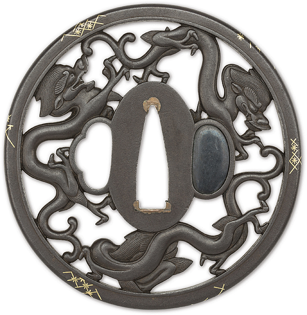 【Lot0282】 三匹竜透鐔 銘 明珎𠮷久圖生涼軒勝平(花押)