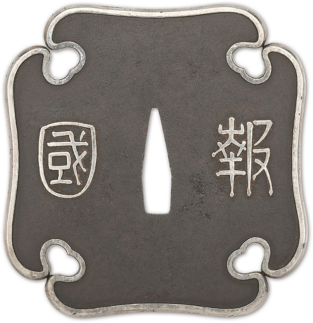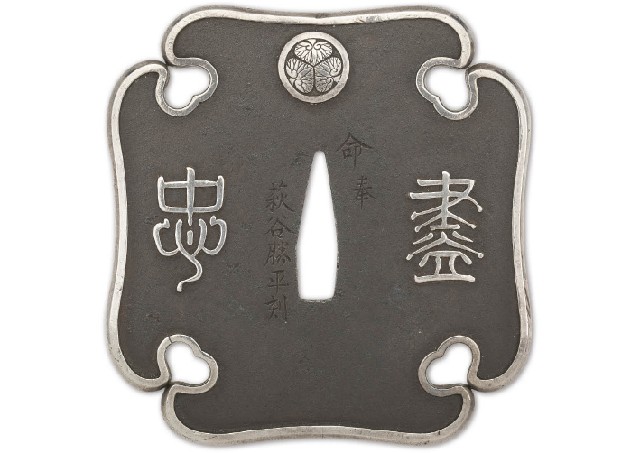 【Lot0283】 文字家紋鐔 銘 命奉萩谷勝平刻