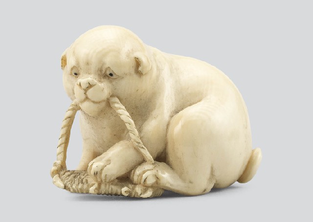 象牙犬に草鞋根付