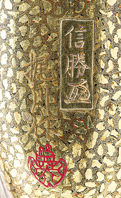 印籠/H8.6×W5.4×2.4cm 底部に描き銘「信勝(花押)」「梶川作(花押)」 根付/H1.6×W3.9cm 箱付 緒締付
