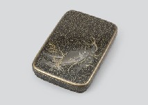 【Lot0337】 相良織鉄地金銀象嵌宝尽金具煙草入・網代地煙管筒