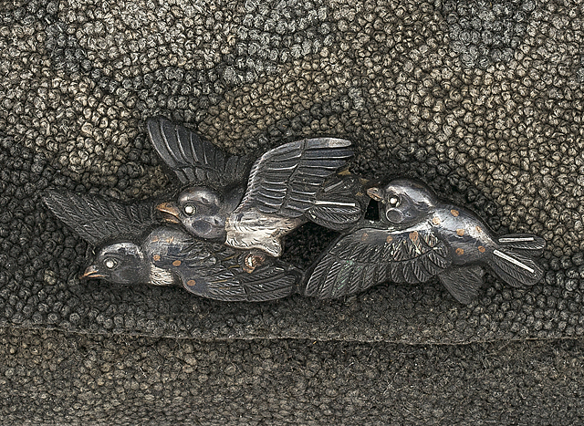 相良織群雀金具煙草入・網代地煙管筒