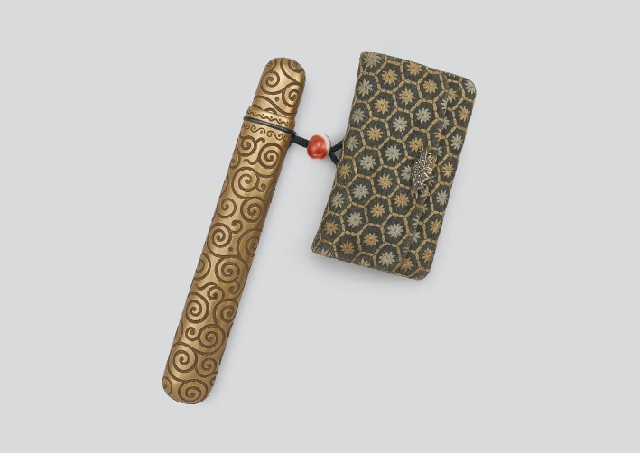 笠水仙金具煙草入・堆漆倶利文煙管筒