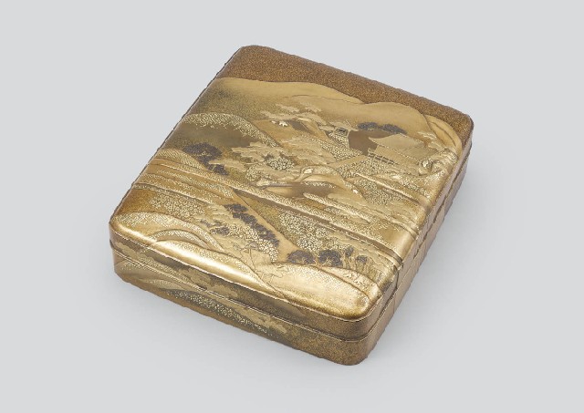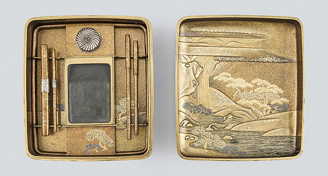 【Lot0365】 蒔絵山水楼閣文硯箱
