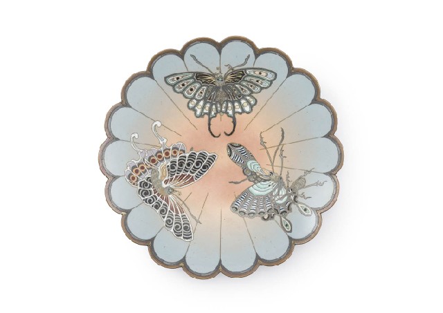 【Lot0380】 七宝蝶文菊花形皿