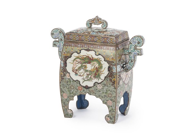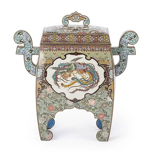 【Lot0385】 七宝龍鳳凰文双耳蓋物