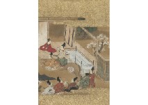 紺紙・金泥 28.5×121(全体)cm イタミ 箱付 藤本了因、古筆了任極札 「公爵島津家蔵品入札」(東京美術倶楽部 1928年)目録No.104に掲載 同目録付