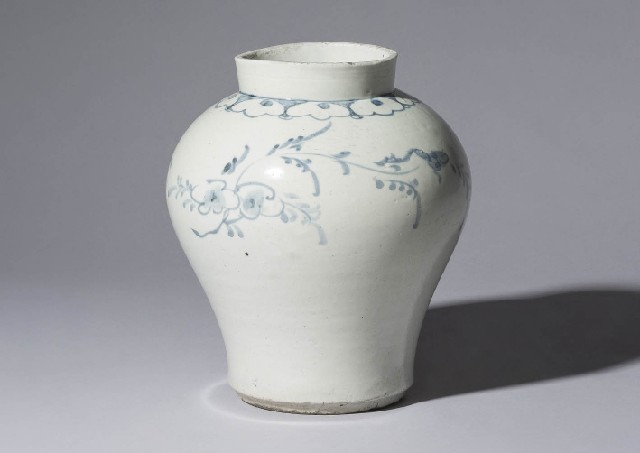 【Lot0063】 李朝染付花文壷