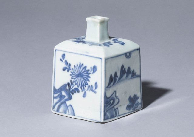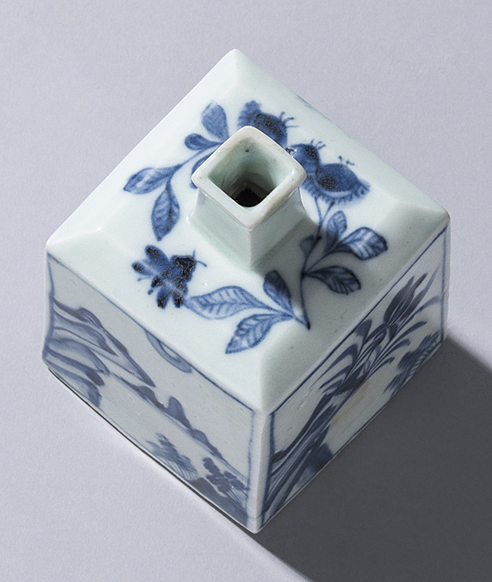 【Lot0075】 李朝染付蜂栗山水花文角瓶