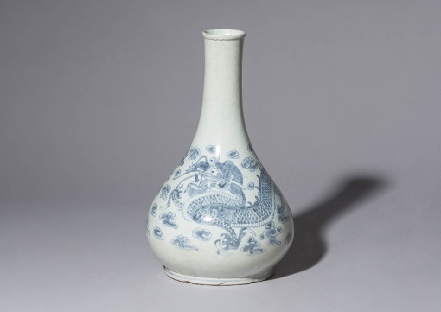 【Lot0077】 李朝染付雲龍文瓶
