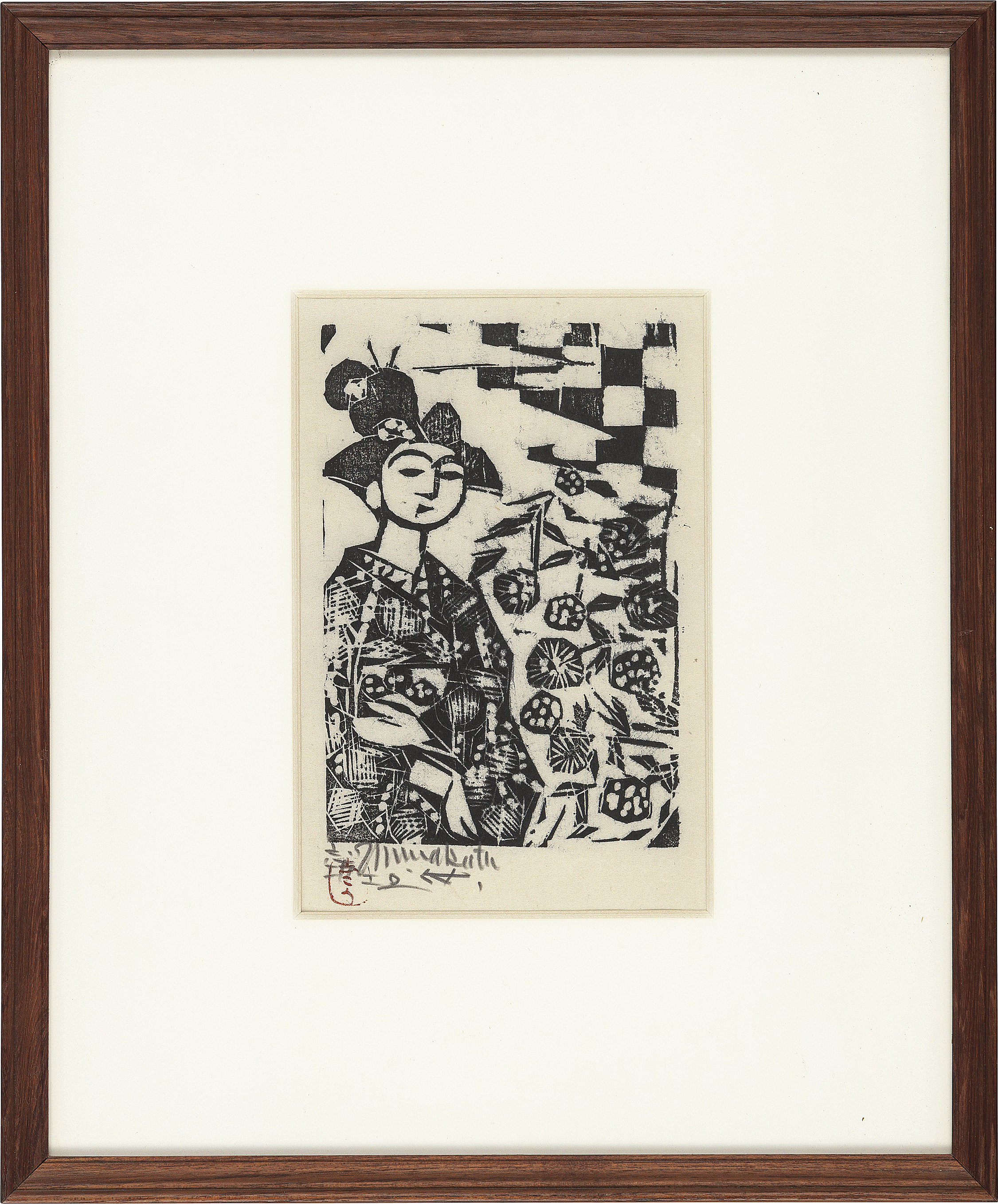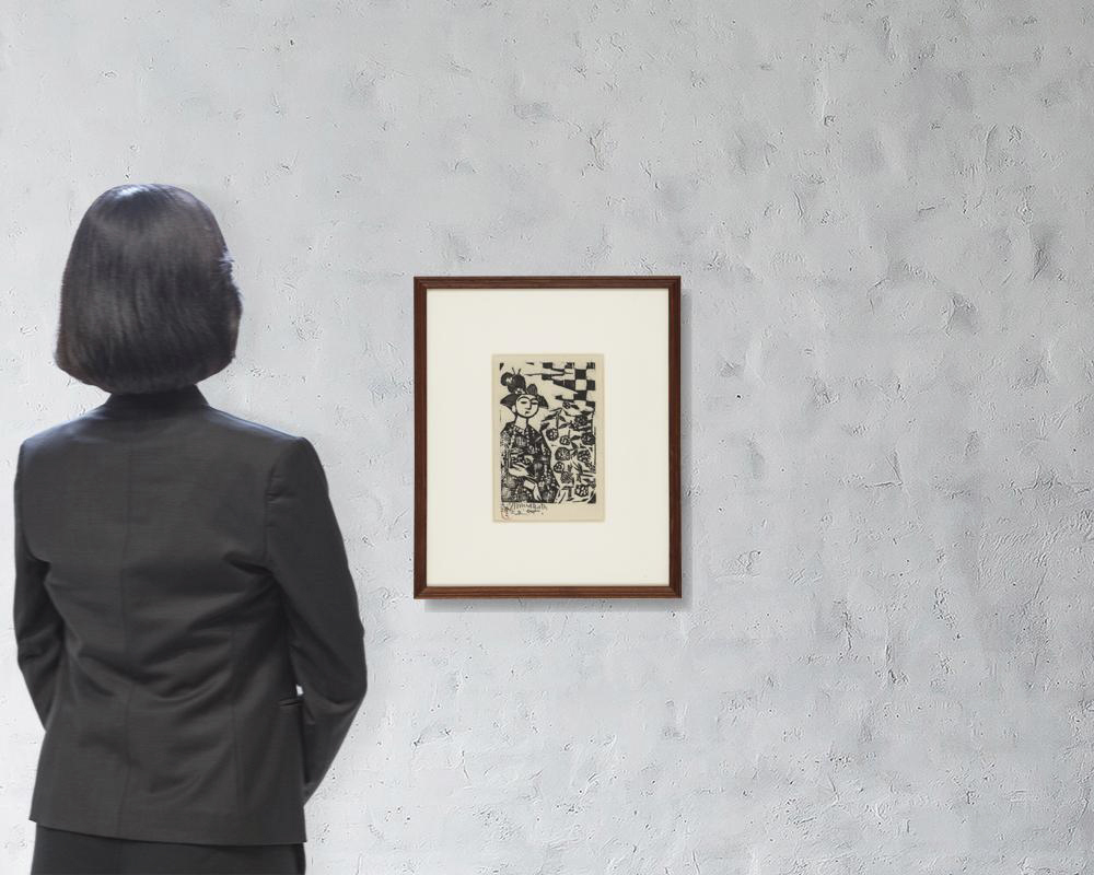 講談社8巻No.6 1956年 板画 19.5×13.5cm サインと印有 シートサイズ 34.5×24.5cm 和紙による裏打ち 版面及びマージンに薄いヤケ マージン数ヶ所に小さなシミ、わずかなシワ 額付