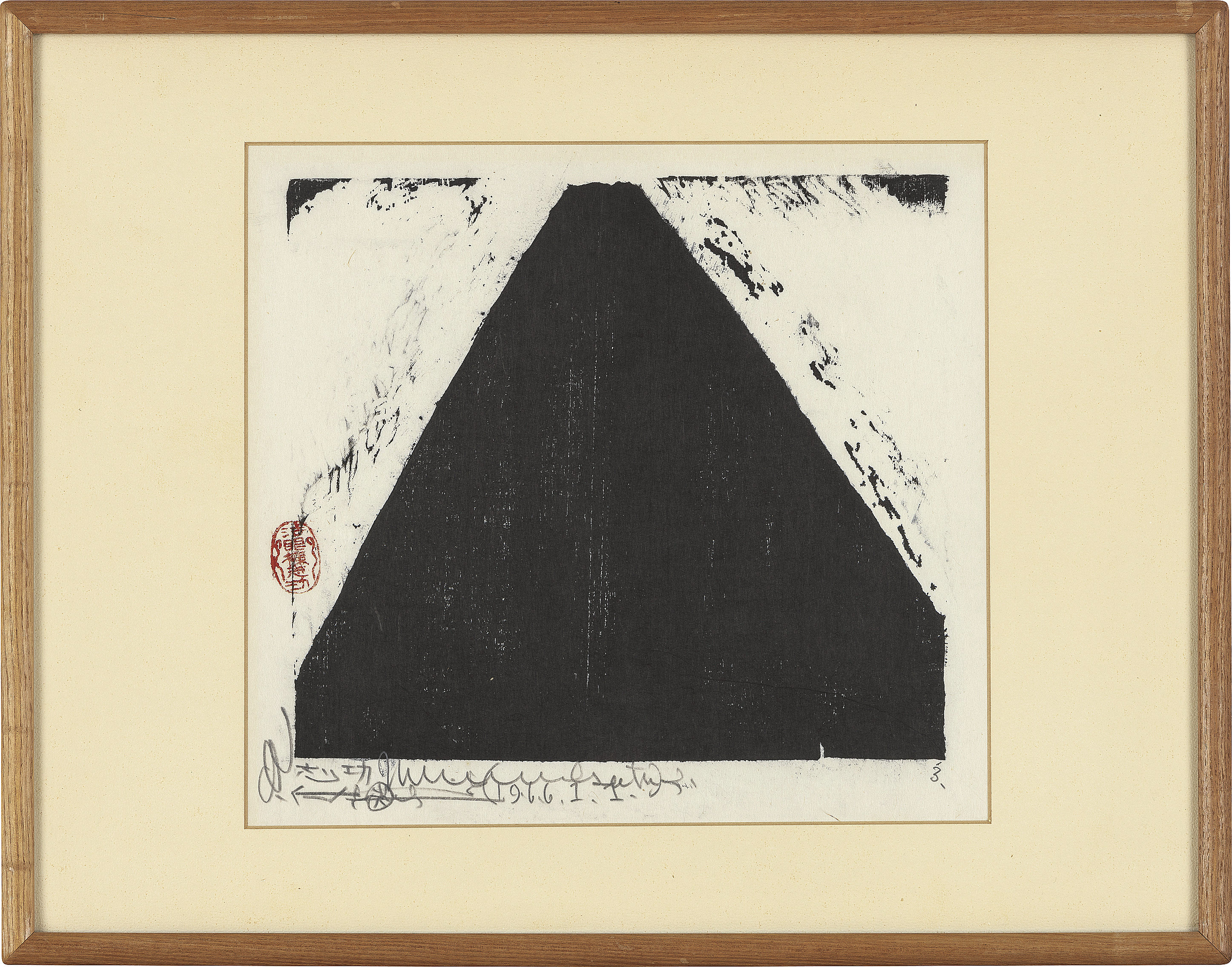 講談社11巻No.171 1966年 板画 25×28cm サインと印有 シートサイズ 33.4×35.3cm 「棟方巴里爾」鑑題シール 和紙による裏打ち マージンカット 版面及びマージンに薄いヤケ、数ヶ所にシミ 額付