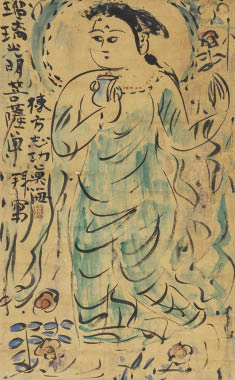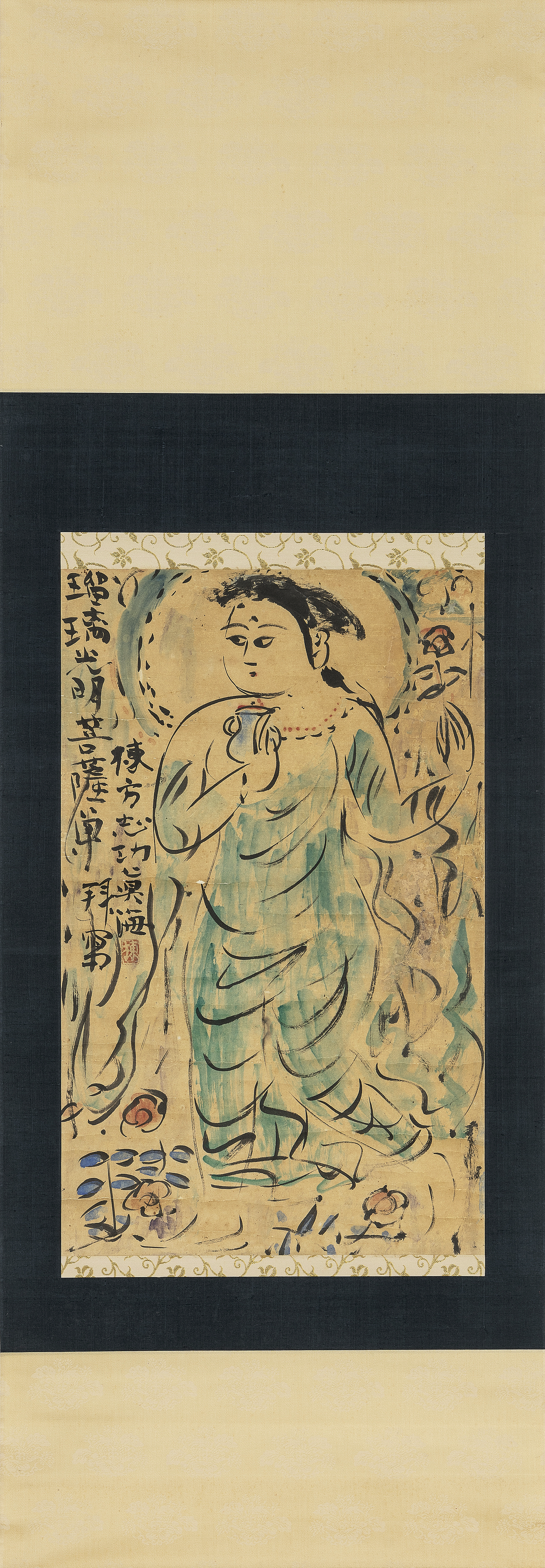 倭絵(紙本・彩色) 67×41.3cm 落款と印有 軸装 画面全体にヤケ、所々にシワ、ヤブレ、紙の欠損、数ヶ所にシミ、修復 箱付