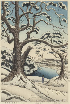 木版 36.3×24cm 版上サイン シートサイズ 39.8×26.4cm 土井版画店版 シート全体に薄いヤケ、数ヶ所にシミ 裏面隅2ヶ所に付着物