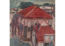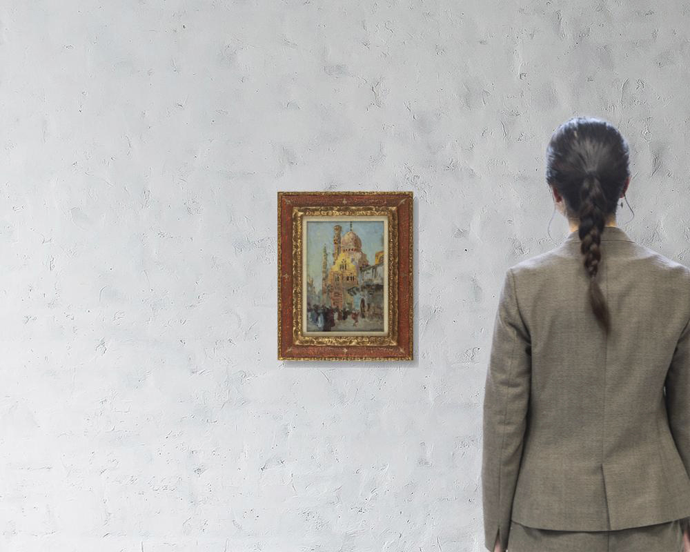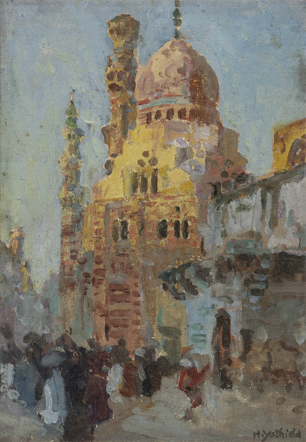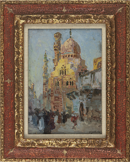 キャンバスに油彩 25.3×17.7cm サイン有 「日動画廊」シール 板による裏打ち 画面数ヶ所にヨゴレ 額付