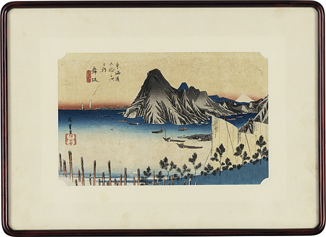 木版 22.5×35.6cm 版上落款 版元印 作品は裏面縁沿い2ヶ所を台紙に貼付 ※詳しいコンディションについてはお問い合わせください。 額付