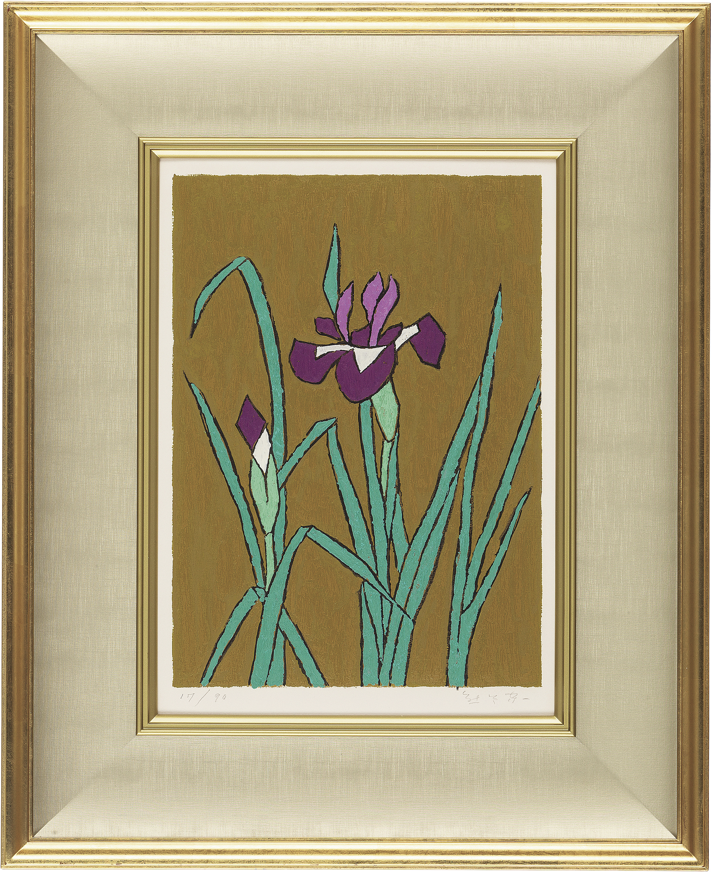 岐阜新聞社No.27 1975年 シルクスクリーン 33.5×24cm サイン有 ed.90 版面数ヶ所に浅いヒビ 版面及びマージンに薄いヤケ 額付*