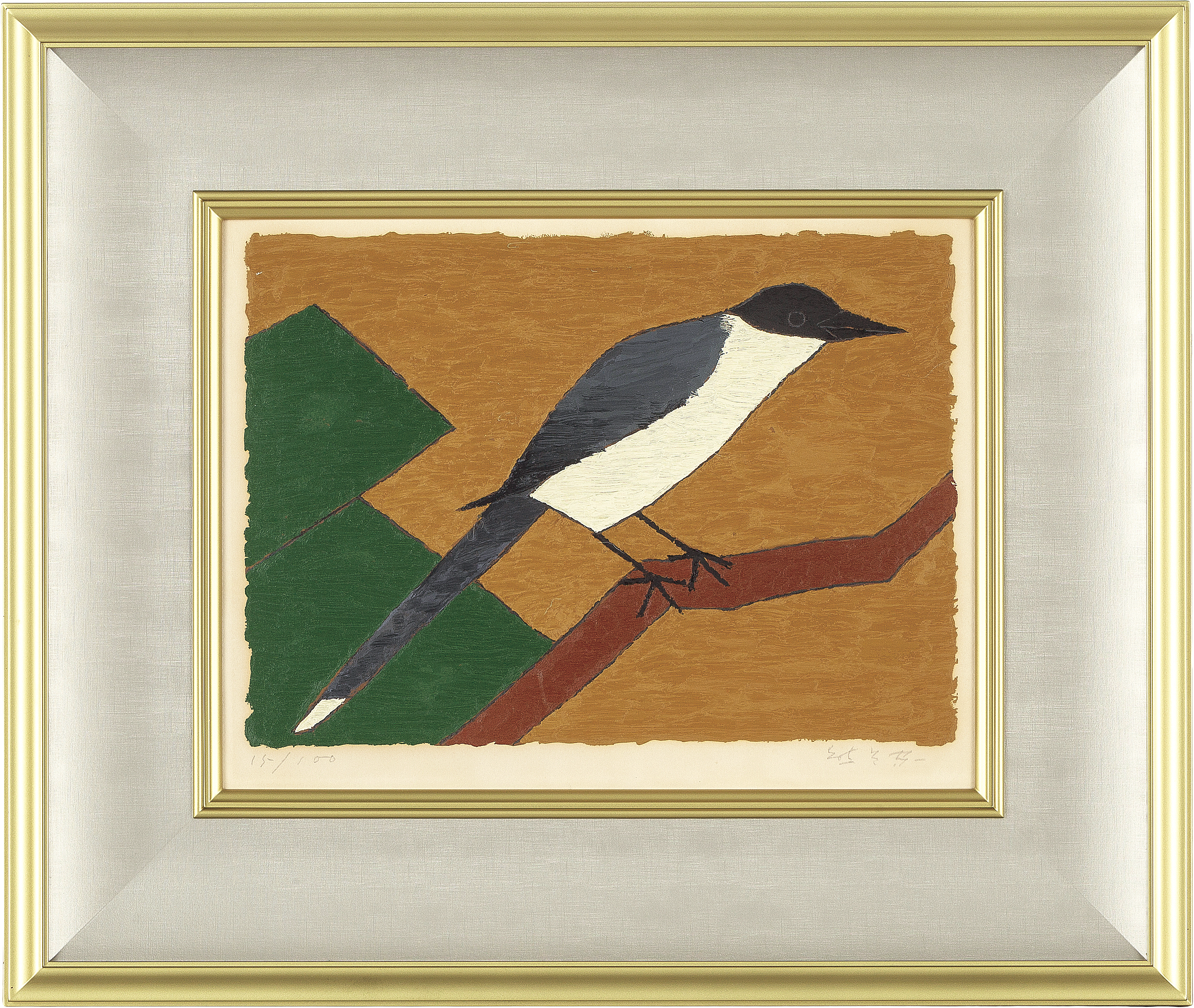 岐阜新聞社No.33 1976年 シルクスクリーン 24×33.5cm サイン有 ed.100 版面全体に薄いヤケ 版面及びマージン数ヶ所に付着物 マージンにヤケ、数ヶ所に小さなシミ 額付*