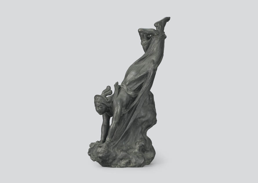 ブロンズ H83×W53×28cm 底部に刻銘 作品数ヶ所に緑青、ヨゴレ、コスレ 「山崎坤象」識色紙
