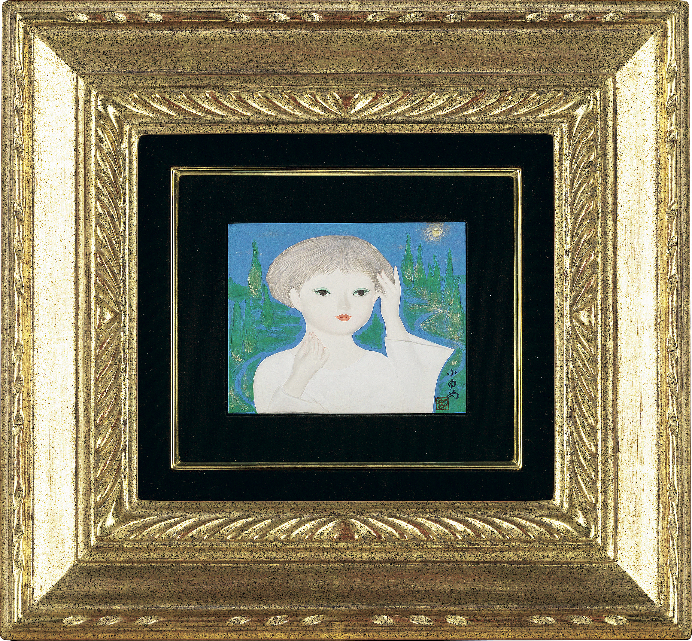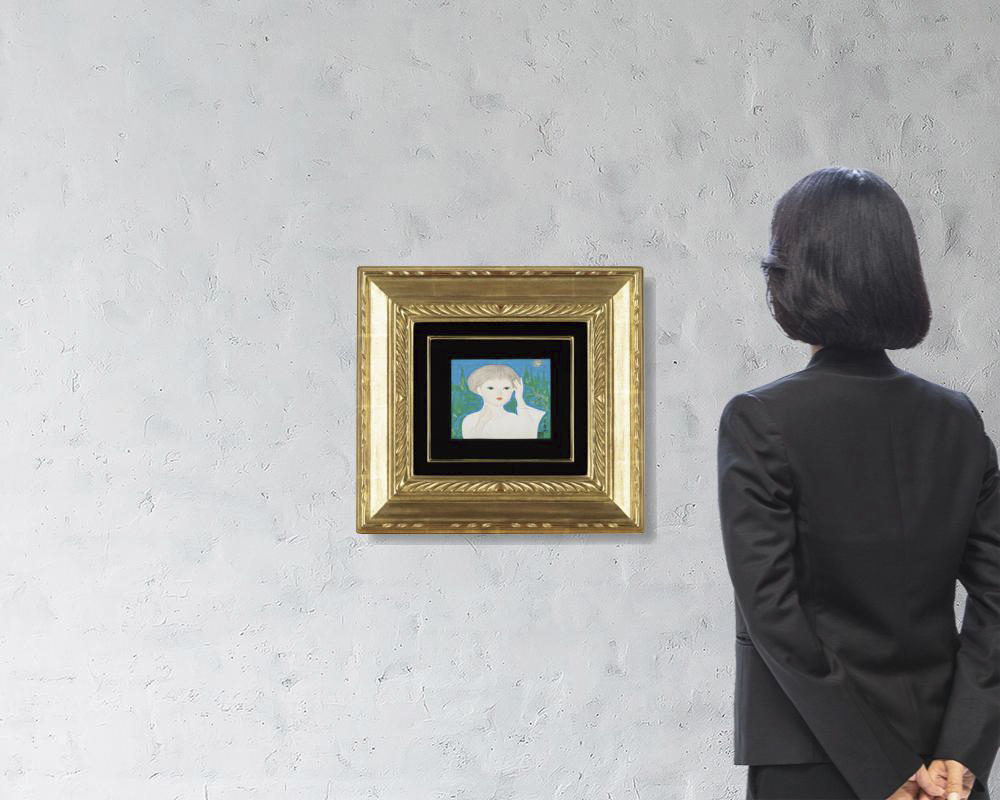 樹脂に彩色 11.7×14.8cm サインと印有 共シール 額付