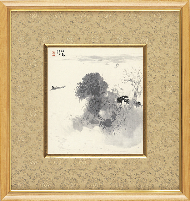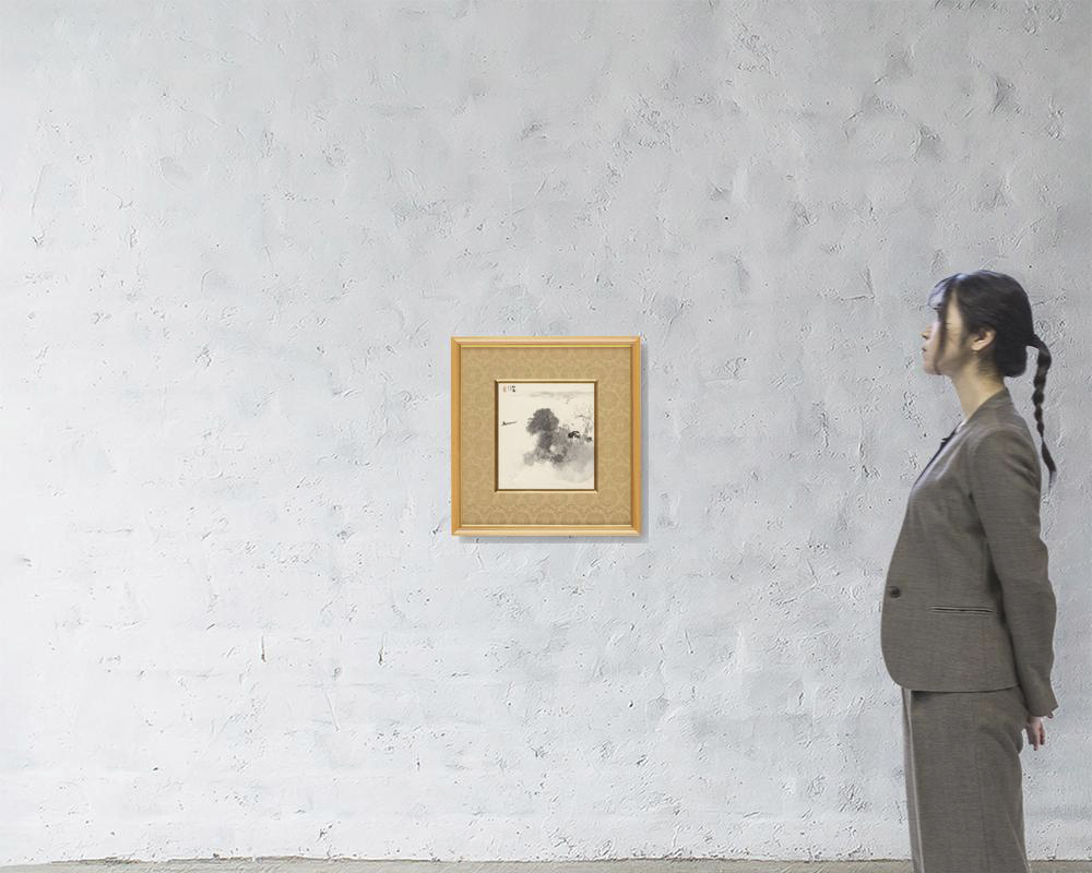 紙本・水墨 26×23.4cm 落款と印有 画面全体に薄いヤケ、数ヶ所にシミ、1ヶ所にわずかなヨゴレ 「竹内四郎」鑑題板 額付*