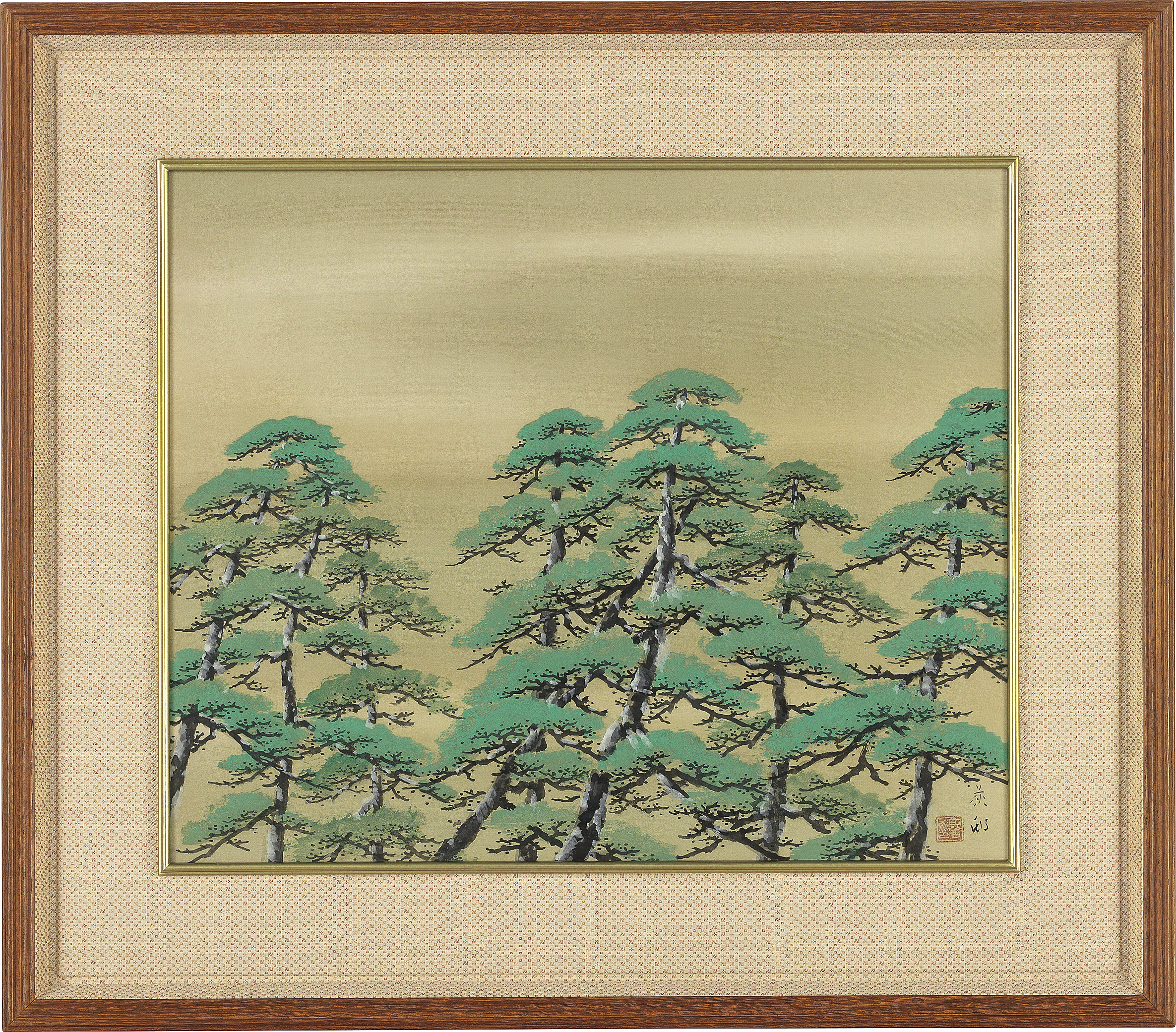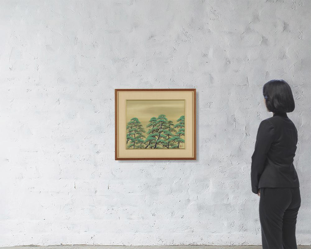 絹本・彩色 42.2×51cm 落款と印有 画面全体に薄いヤケ 共箱 額付