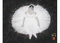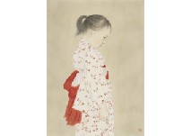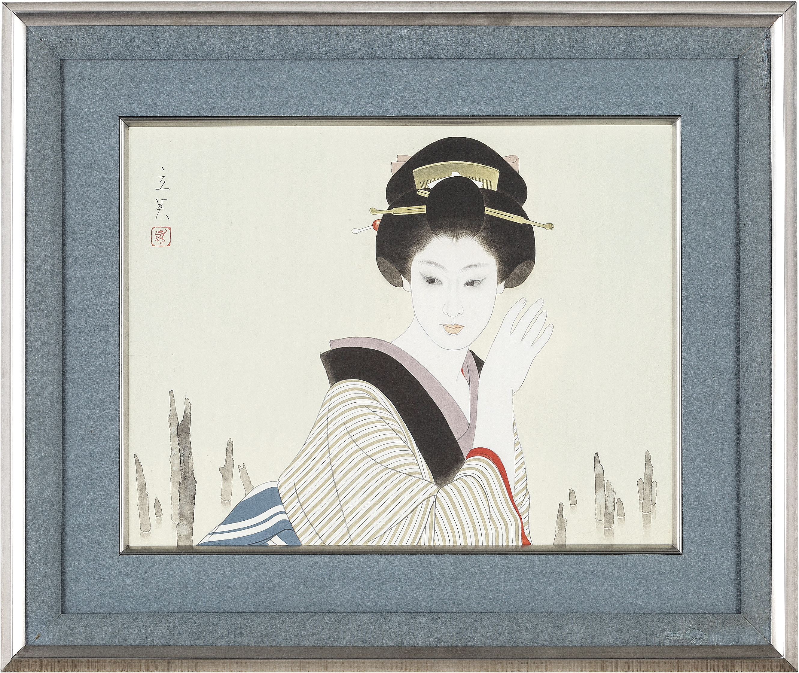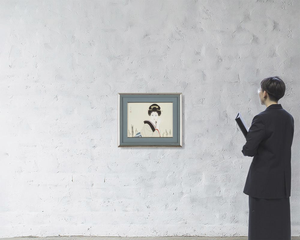 紙本・彩色 6号 落款と印有 共シール 画面全体に薄いヤケ、数ヶ所に小さなシミ 額付