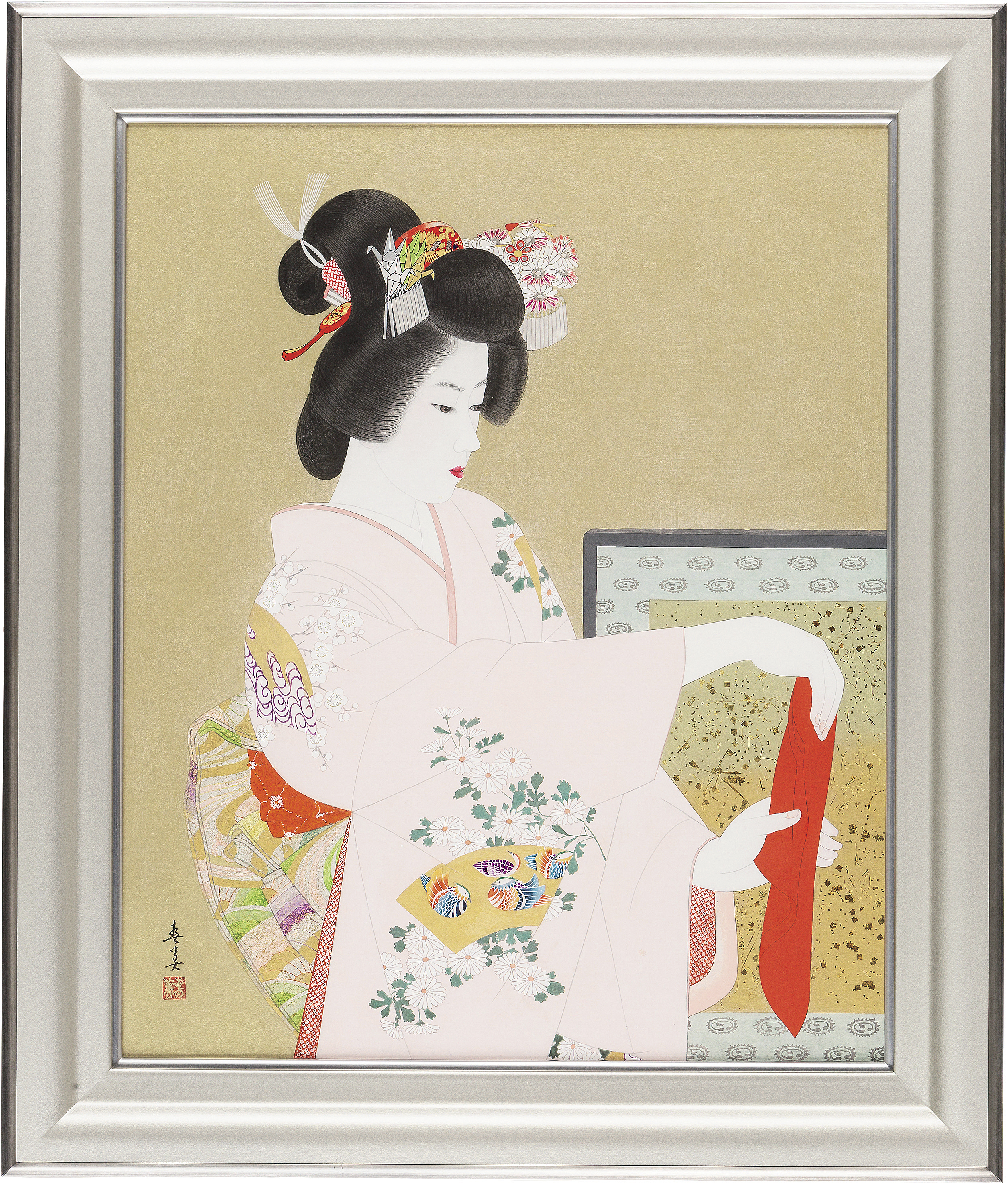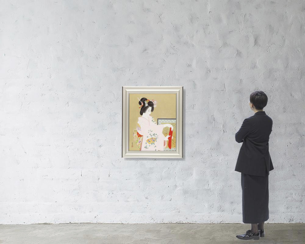 紙本・彩色 30号 落款と印有 共シール 画面数ヶ所にシミ 額付