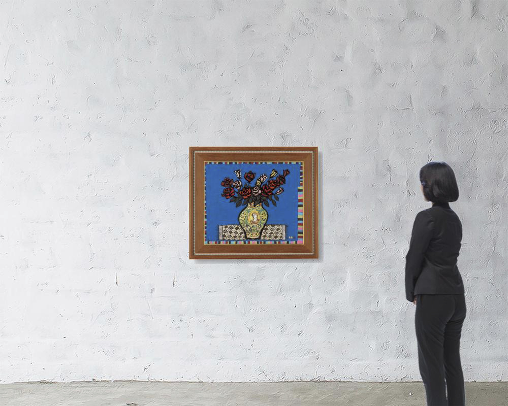 紙本・彩色 20号 落款と印有 共シール 画面数ヶ所にヒビ、わずかな絵具の浮き 額付