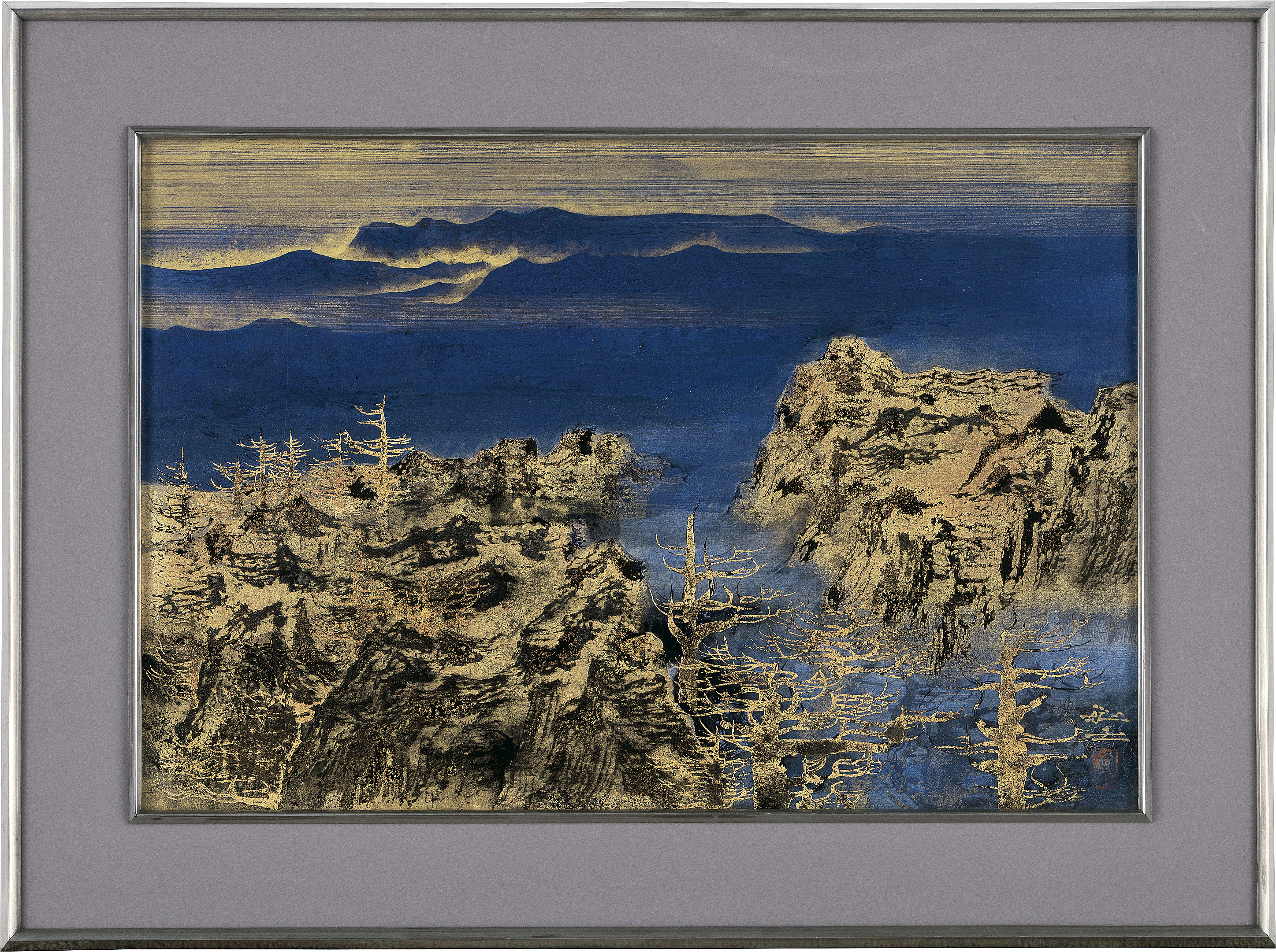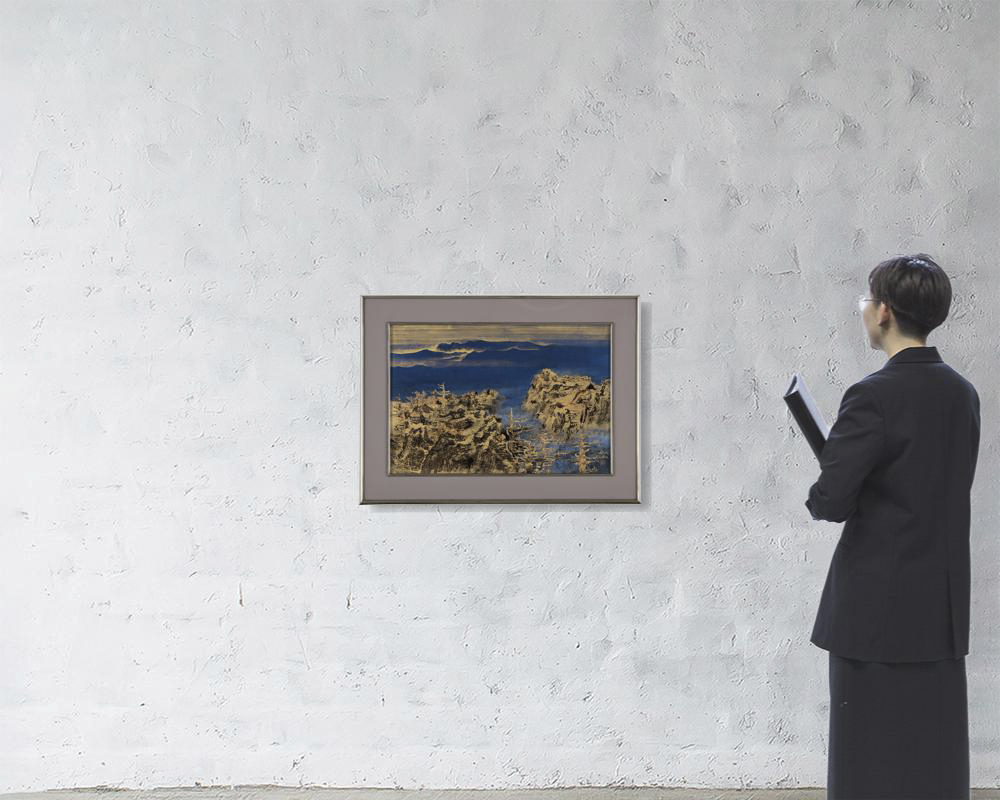 紙本・彩色 12号 落款と印有 共シール 額付