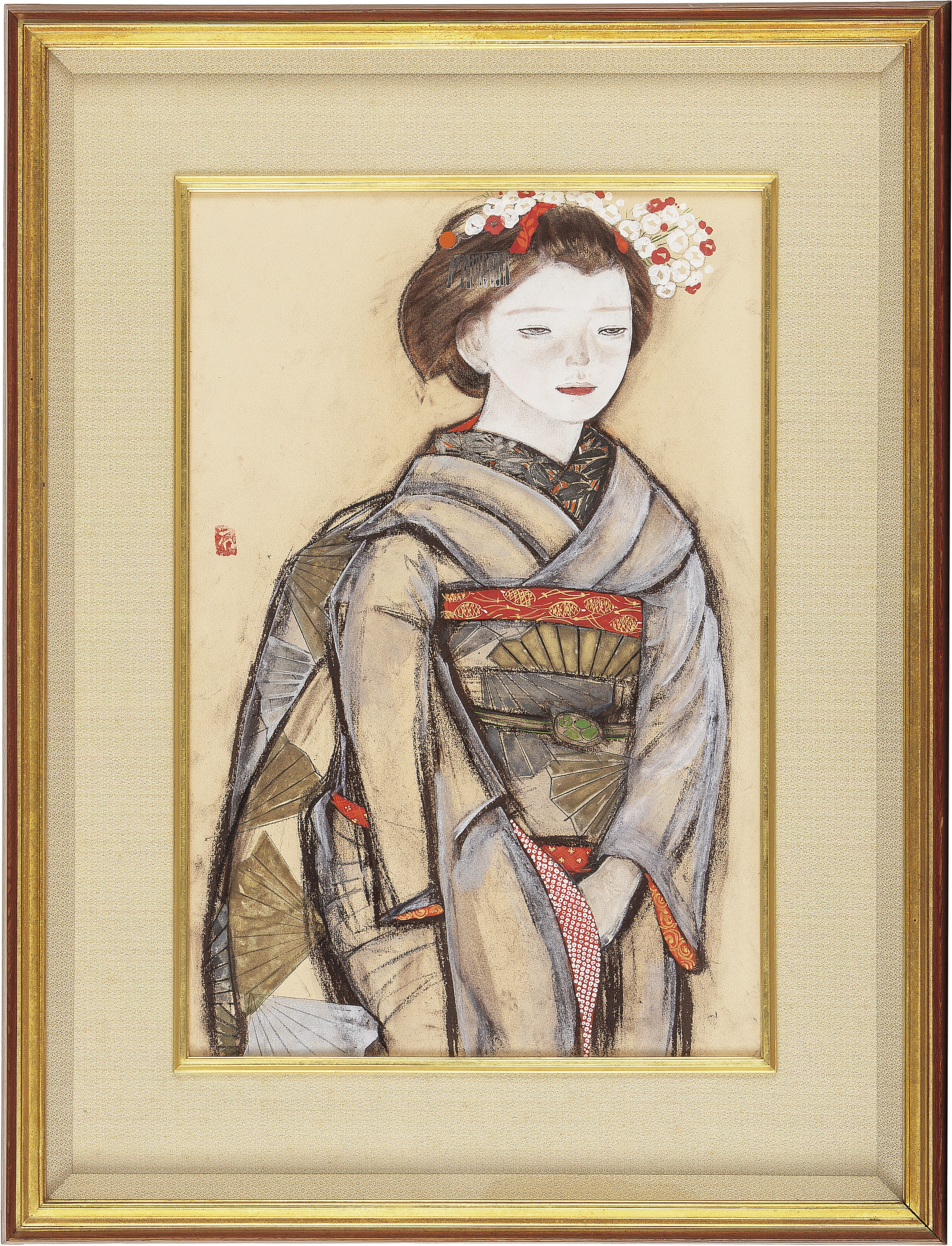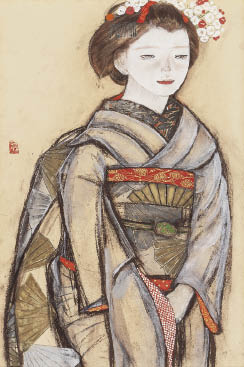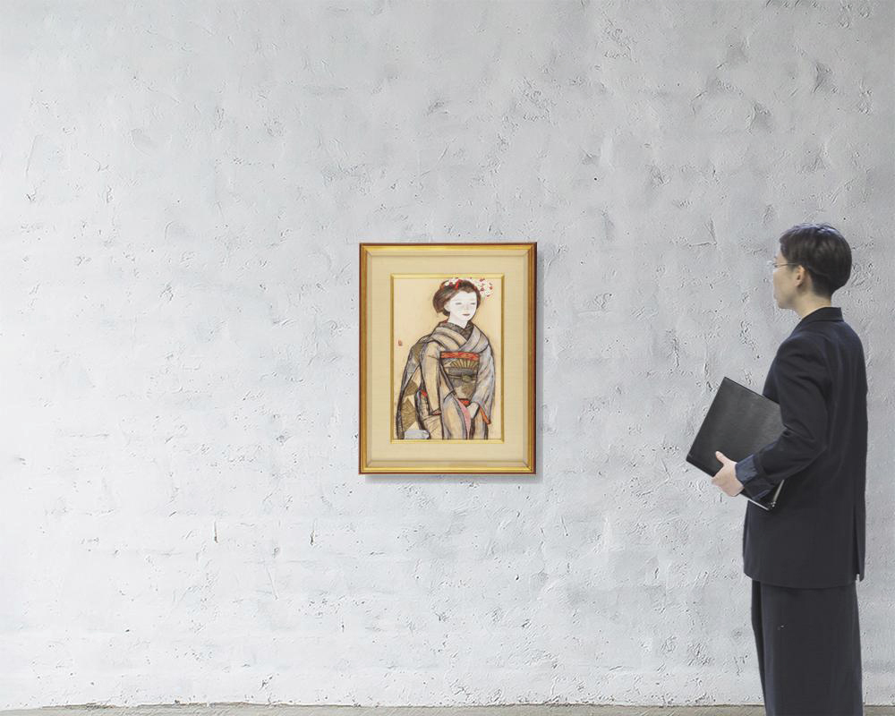 紙にパステル・彩色 49.8×32.9(紙)cm 印有 共シール パネルによる裏打ち 画面全体に薄いヤケ、数ヶ所にシミ 額付