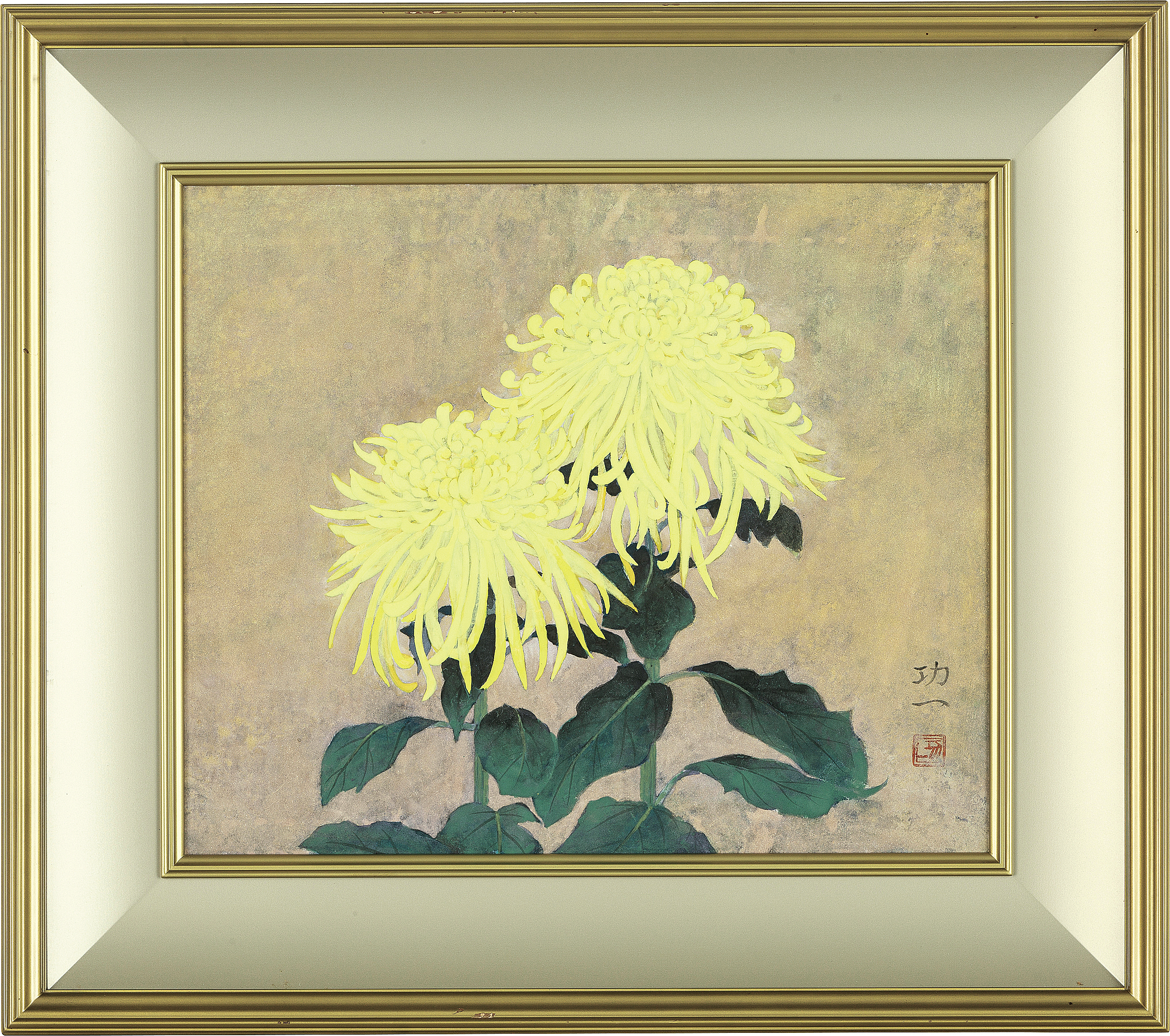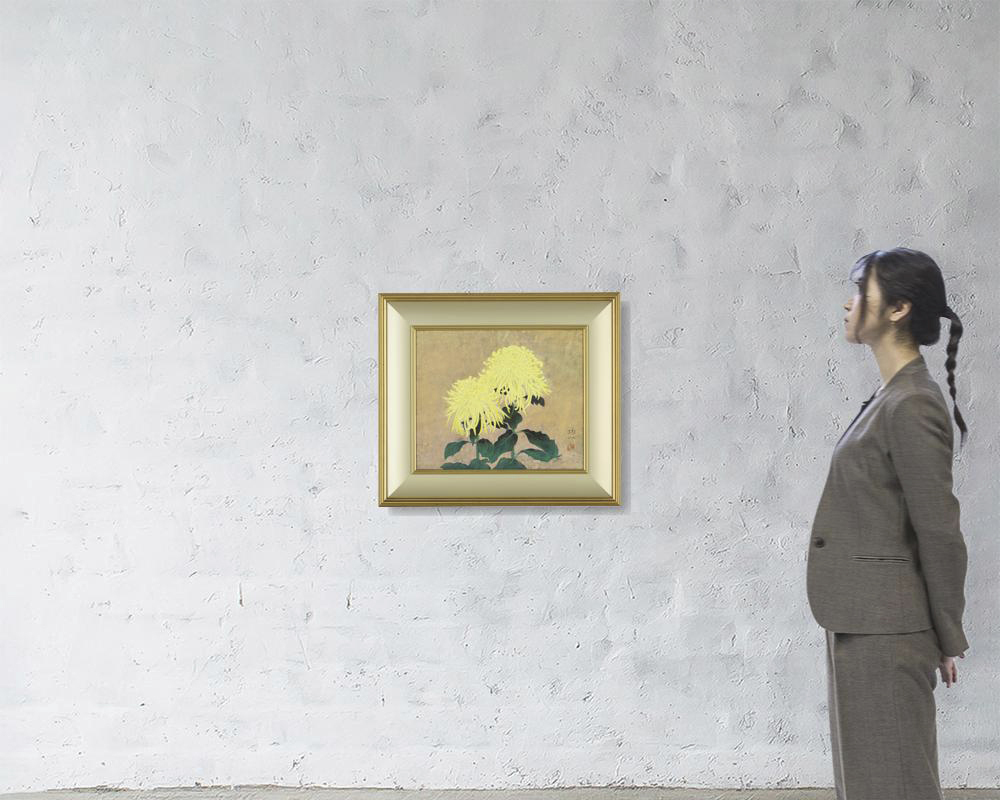 紙本・彩色 8号 落款と印有 共シール 画面数ヶ所に浅いヒビ 額付