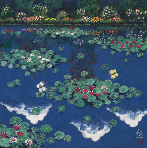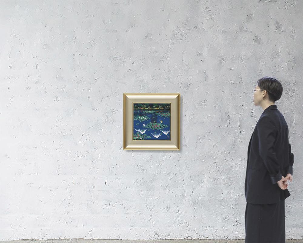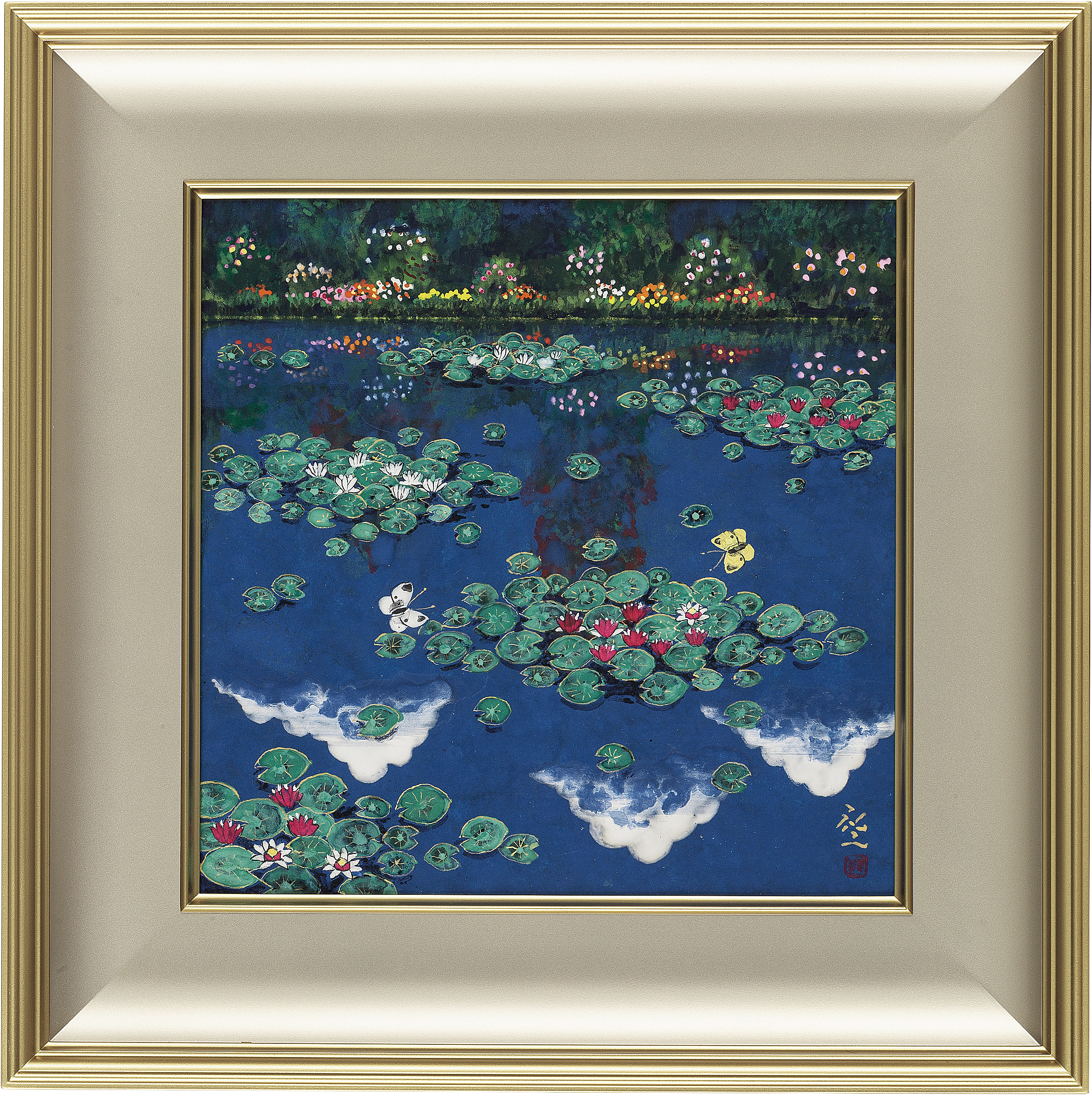紙本・彩色 33.5×33.5cm(4号) 落款と印有 共シール 画面数ヶ所にヒビ、1ヶ所に修復 額付