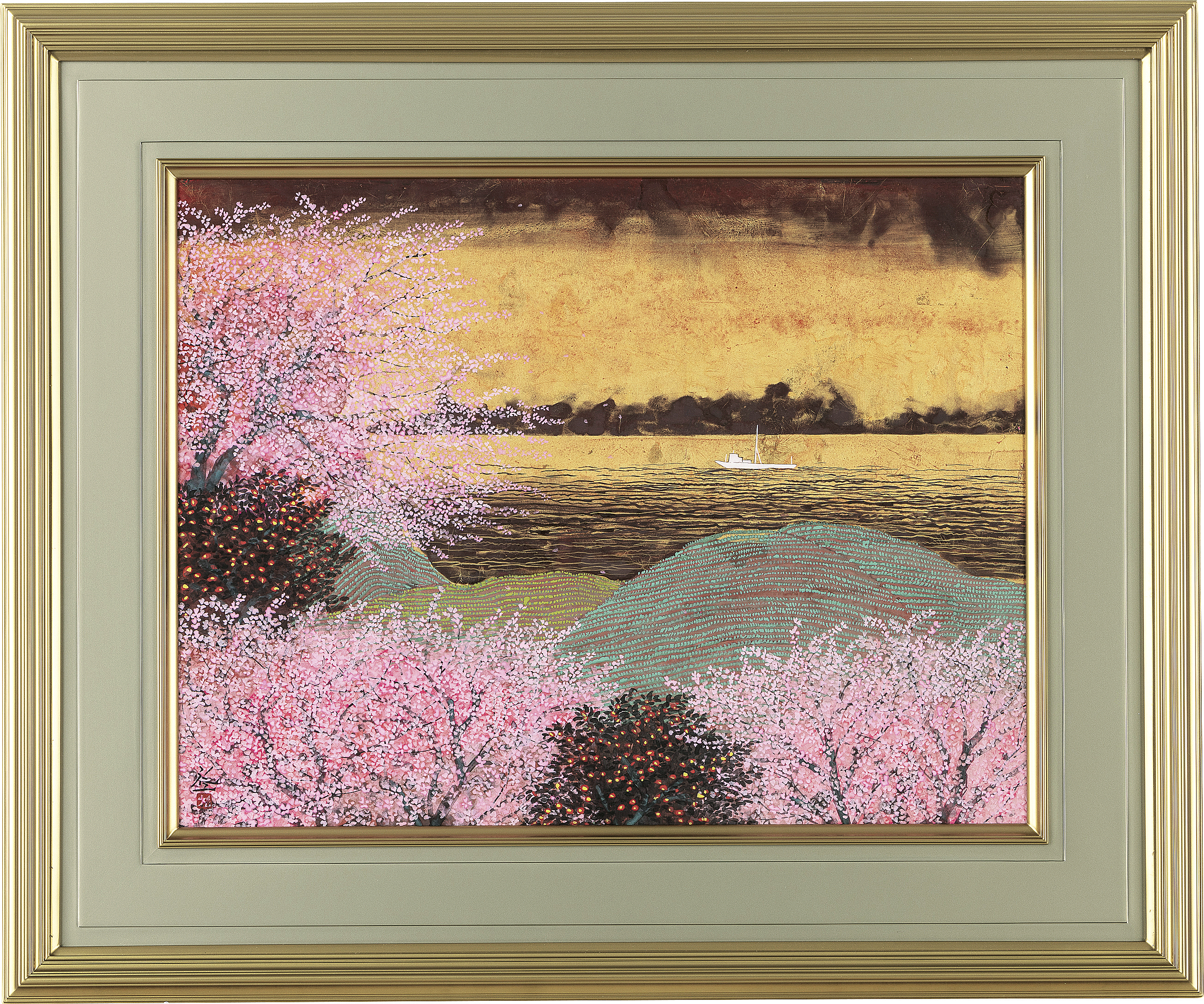 紙本・彩色 50×65.3cm(15号) 落款と印有 共シール 画面数ヶ所に小さな剥落 額付