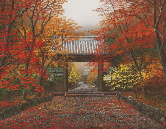 紙本・彩色 10号 落款と印有 共シール 「個展」(三越、2001年)出展作品シール 額付