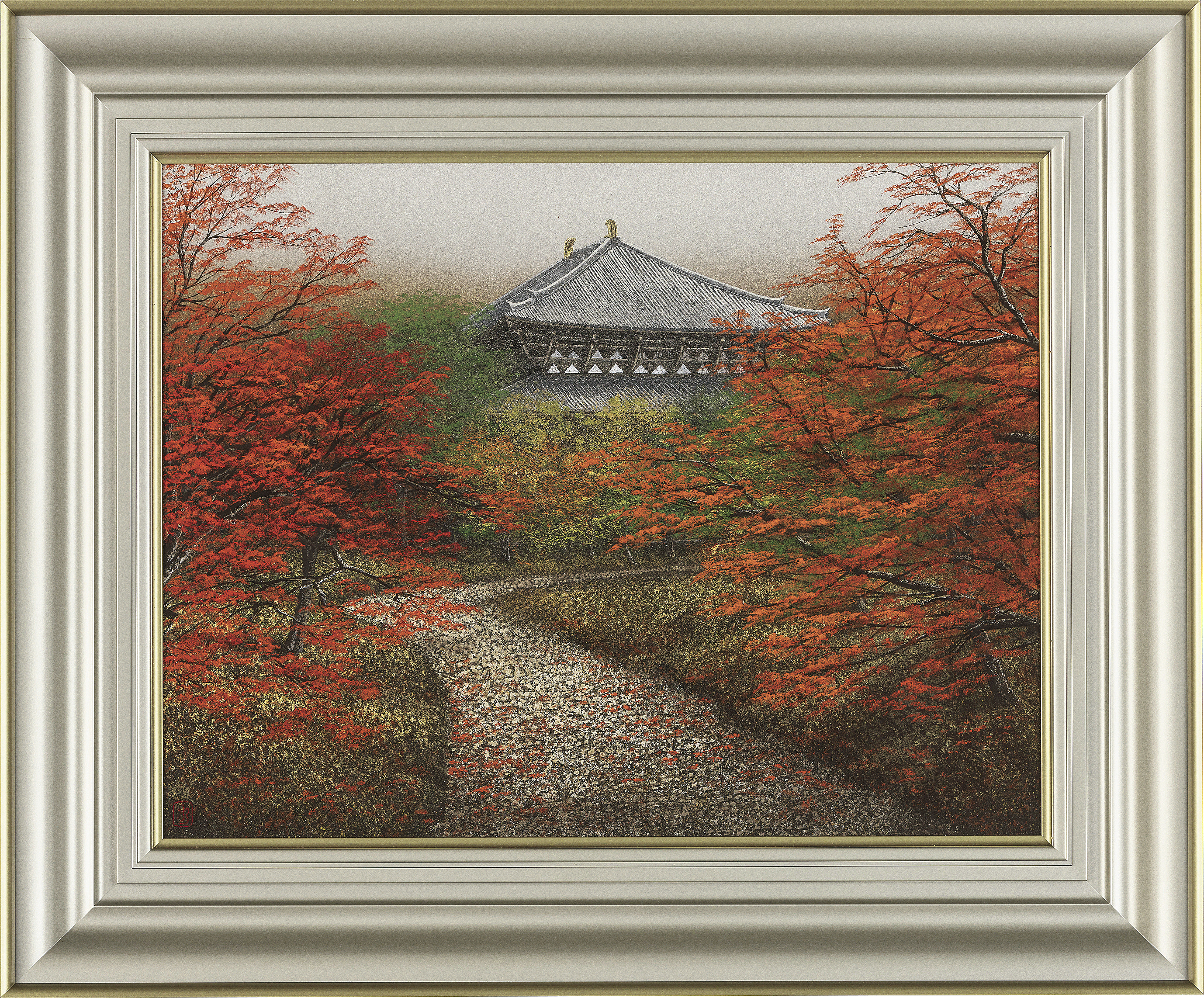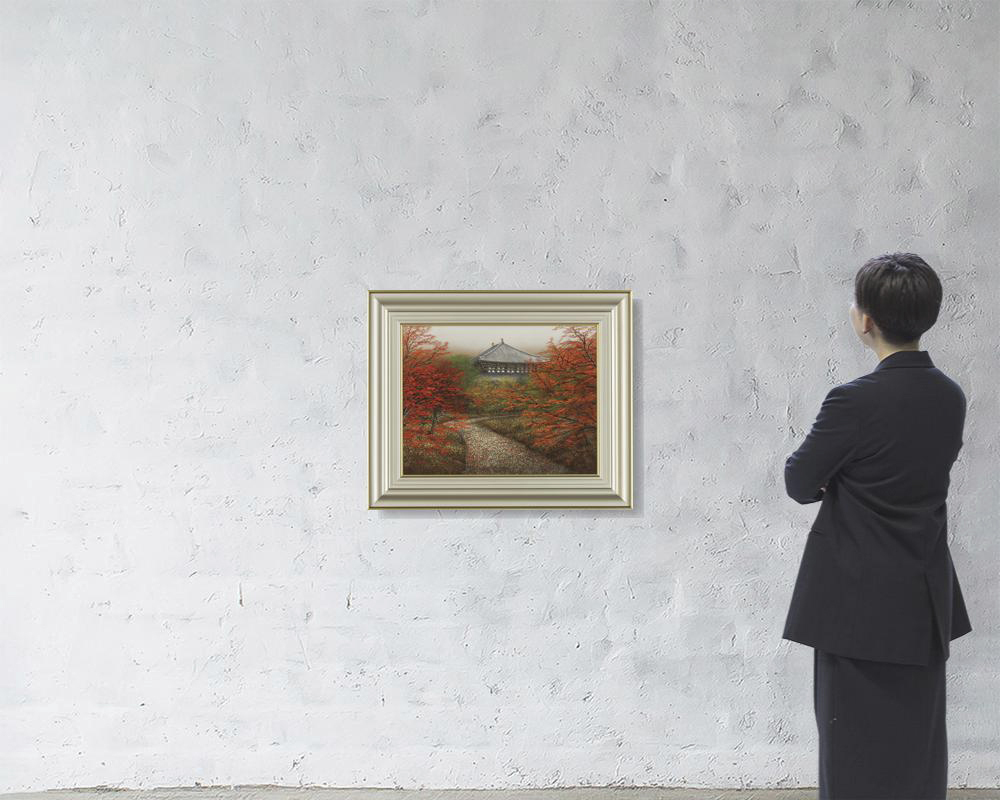 紙本・彩色 10号 落款と印有 共シール 額裏にサイン 画面1ヶ所にわずかなコスレ 額付