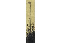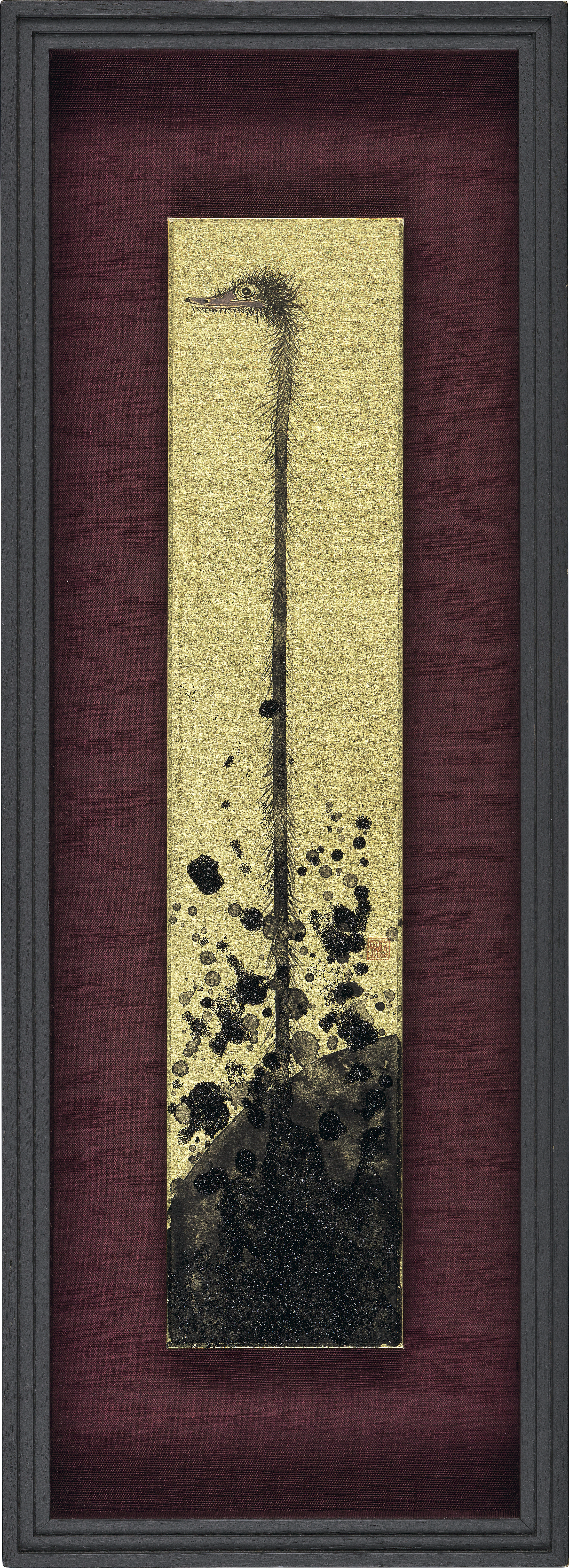 金地短冊に彩色 36.3×7.5(短冊)cm 印有 共シール 額付*