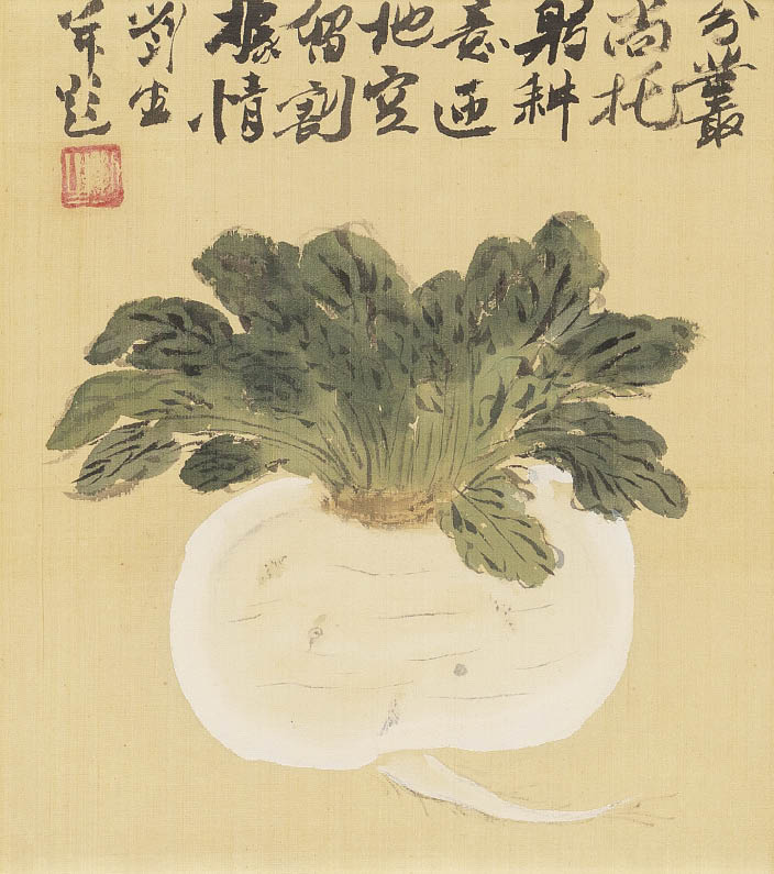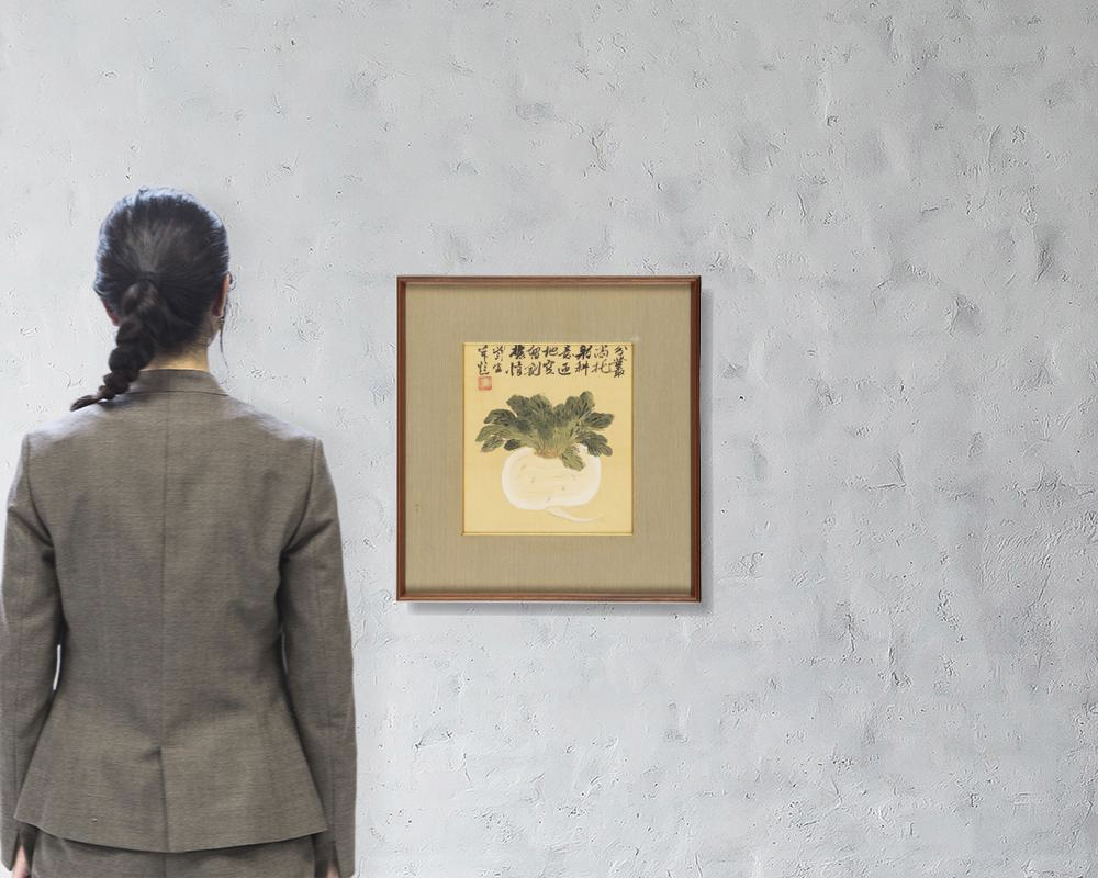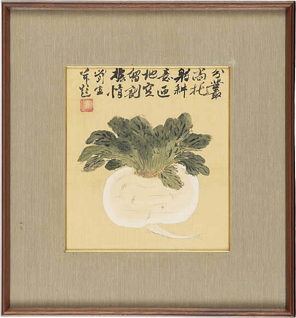 絹本色紙に彩色 27.2×24.2(色紙)cm 落款と印有 画面全体にヤケ、数ヶ所に小さなシミ 「岸田麗子」鑑題箱 額付