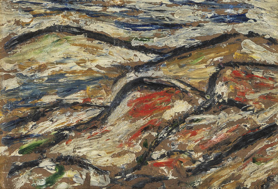 厚紙に油彩 15.8×22.8cm 「木村東介」鑑題シール ボードによる裏打ち 画面数ヶ所にシワ、ヒビ、剥落、修復、2ヶ所に紙の欠損、隅3ヶ所にピンホール 額付